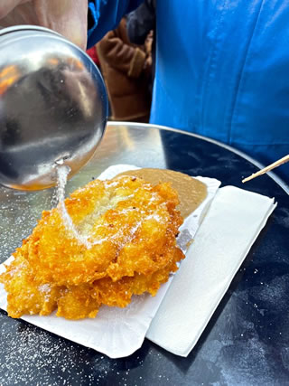 Endlich Wiehnachtsmarkt! Ok in Bremen is't nu wedder so wiet. Nich blots för uns en Mutt' is de Besöök bi de lütte Bood dicht an'n Doom, wo al johrenlang en Frue Kantüffelpuffers backt. Kross, hitt, allerbest! Bi't Töven in de lange Slang, Tokieken, wo dat bruddelt, un den leckern Duft anne frische Luft löppt di al Water in'n Mund tosamen. Dorto Appelmoos un nu ok so'n niemoodschen Kraam, deftig as Sour Cream' un Tsatsiki' oder sööt as Nutella. Wat so'n echten Bremer is, de bruukt allerdings blots Appelmoos un 'n beten Zucker. Kannst, nee, muttst di all teihn Fingers na aflicken! Vör allen middaags sünd de Kunnen hier meist öllere, faken ok richtig ole Lüüd. Is even en Traditschoonseten, wat een tohuus so goot nich so licht henkriggt. Un du hest den Röök nich inne Köök!