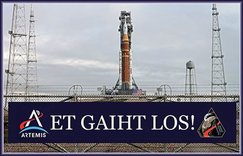 Ein Banner mit dei Unnerschriften van NASA-Lüe un Firmen-Lüe is an den Tuun van den Start-Komplex 39B faste bunnen. Vörher har man dei NASA-Artemis II-SLS-Rakete mit dat upbawde Orion-Ruumschipp an'n 17. Januar 2026 nao dei Start-Rampe bröcht. Nu kann et losgaohn!