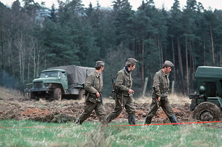 Denn keem de kole Krieg över uns. De NVA un de Bundswehr weern wohrhaftig keen Teiken vun Tosamenhören. Wenn an de Lännerscheid gegenöver vun en Grenzsuldaten ut de DDR stünnst, kein teihn Meter vun di af, denn keek de dörch di dörch, as wenn du Gifft weerst. An 900 Dütsche hebbt de DDR-Grenzsuldaten dootschoten, as de nan Westen wulln. In de Frieheit!! Weg vun de Stasi-Spitzel!!
