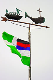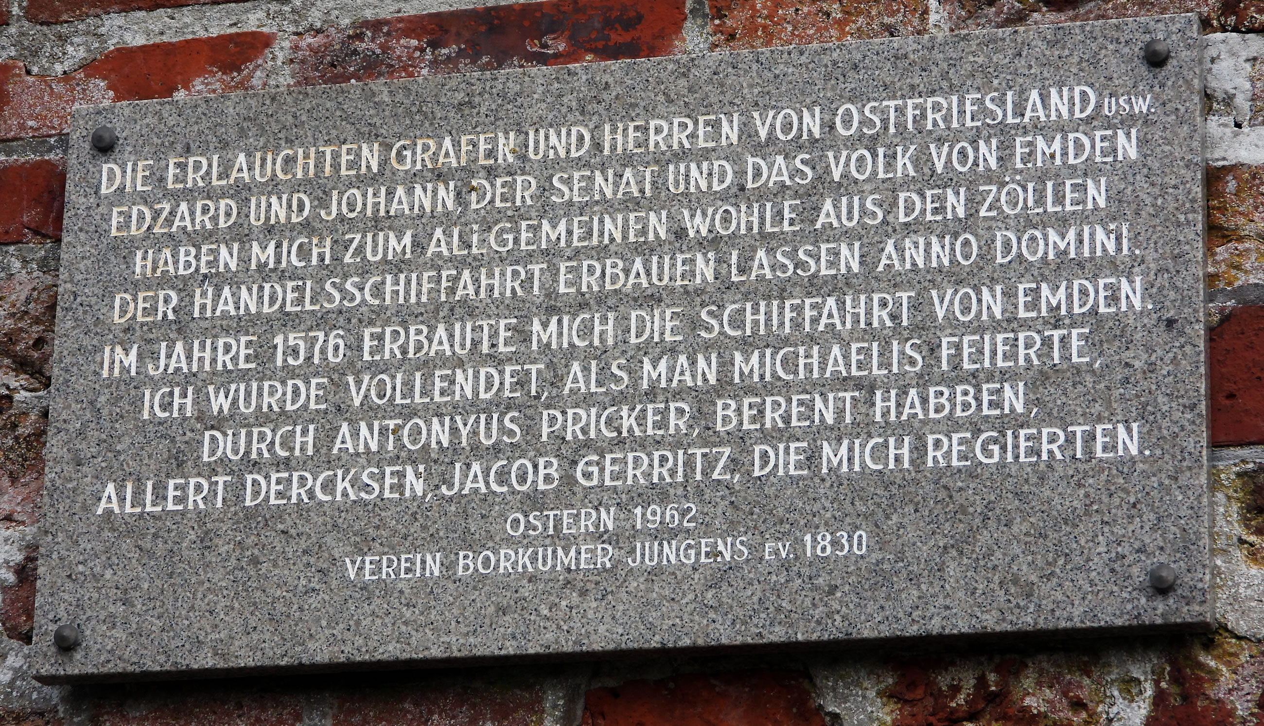 .... "Kein Bohrturm auf Borkum!", dat leest wi hüüt an vele Steden op de Insel. Un de Gasbohren is ja ok en Arger. Wi hebbt unsen Urlaub dor düt Johr noch genaten, un ik heff mi to'n Teel sett, all dree Lüchttoorns to fotografeern. Avers de intressanteste vun all is de Lüchttoorn vun 1576. Wieldat de Insel direkt vör de Emsmündung liggt, weer dor en Schippsteken dringend nödig. De Gedenktafel vertellt uns, dat de Schippszölle vun Emden den Bu ok finanzeert hebbt. (Nich bloots Donald Trump is op den Infall mit Zölle kamen!) Lüchten dä de Toorn avers eerst siet 1817, dor kreeg he sien Latern. Blangen den Toorn liggt ok en Walfänger-Karkhoff, un binnen is dat Heimatmuseum över den Walfang op Borkum, as ok de smucke Windfahn wiest.