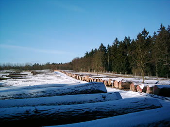 An'n tweiten Avend weer uns "Prämie" denn noch wat grötter. Wi weern ok bannig in Sweit kamen: Drei Eikenstämm legen schier up de Ierd.