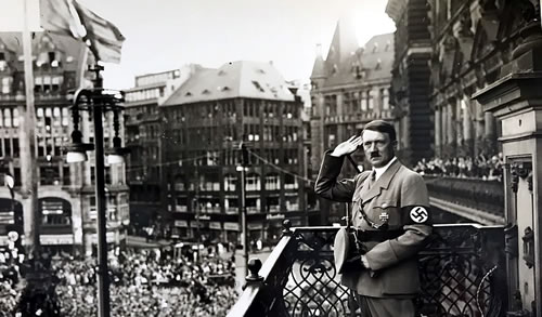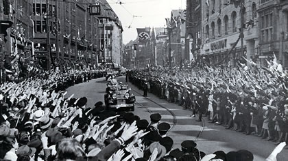 Trüch to mien Vadder, trüch to de uhrenbedüselnde Heiljubelee för Hitler. De Sünn schient, Vadder sweet in siene SA-Uniform, he steiht mit den Rüch to de Fohrbohn, de Arms warrt em lohm vun dat Fasthollen mit siene Nevenlüüd, aver nu nu endlich kümmt HE: uns 'Führer' Adolf Hitler! De Minschen schuuvt un schuuvt na vörn, de Keed ut SA-Mannen drauht to rieten! Hitler aver steiht in en groot, apen Auto un lett sik heel langsom an uns düütsche Döösköpp vörbikutscheren. Eernst kiekt he ut de Wäsch, wieldat he doch de hele Verantworden driggt, hett mien Vadder seggt. Un nu grööt he uns mit sien utreckten rechten Arm: Hitler mookt den Hitlergruß! En lütte Deern löppt na vörn op em to un schenkt em en Rükebuschen, he böögt sik daal, eit ehr de Wang un grient, aver bloots för en Sekunn. Blomen dörvt den Föhrer jümmers bloots Deerns schenken, woso egenlich? Ik bün en beten wat needsch ... Süh an: De Föhrer hett mehr Rünken as op de Biller, de ik vun em kenn. Dor hebbt's em sachts schöner mookt. Nu föhrt he wieder, dat Juchheiein nimmt he mit. Seggen dee he gor nix, de Föhrer, nich mol Heil Hitler', aver he is jo ok nich kaputt. Mien Vadder is teemlich toschann; he kunn sik nich wiet noog ümdreihen un hett den Führer bloots ut'n Ogenwinkel sehn. He schimpt op de SA, de em düssen Sünnerdeenst inbrockt hett, aver he schimpt liesen, dat keeneen ut de Ümgeven em hört. Een kann nich vörsichtig noog sien!