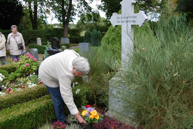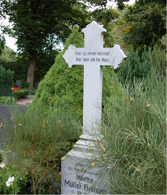 un Simon K Uns Martha Müller-Grählert allein is arm storben, hett nix dorvon hatt. Na 100 Johren hebbt wi uns an dei Fierlichkeiten tau Erinnerung an disse Heimatdichterin bedeilicht. Ook uns Plattdüütsch Krink inn Verein Jahresringe Rostock stellte ein Programm ann '10. September 2008 taun' Läben un Wirken von dei nedderdüütsche Heimatdichterin Martha Müller-Graehlert in dat "Elbotel Rostock" vör. Ünner dei Leitung von Frau Gisela Schwarz un Fru Gisela Reink hett dei Plattdüütsch-Krink (Fru Krebs, Fru Haase, Fru Tschorn, Fru Jennig, Fru Gütschow, Frau Ely 2008 storben inn' Verein Jahresringe Rostock ünner dat Motto "100 Jahre Ostseewellenlied" mit ein Programm (Film- un Fotoschau, Klaus Gäbel, Sanitz) iehrt. 40 Mitglieder un Gäst wiern Tauhüürers von dei gelungen Veranstaltung. Dei Plattdüütsch Krink harr ook dei Idee för ein Gedenkfohrt tau dei Wirkungsstää'von Martha Müller-Grählert un so führten ann 13. September 2008 oewer dat Fischland un denn Darss na Zingst un iehrten mit einen Blaumenstruuß an dei Grawwstätt disse Heimatdichterin, dei nich vergäten is. Fotos: H.-J. Grebin 17.1.2010