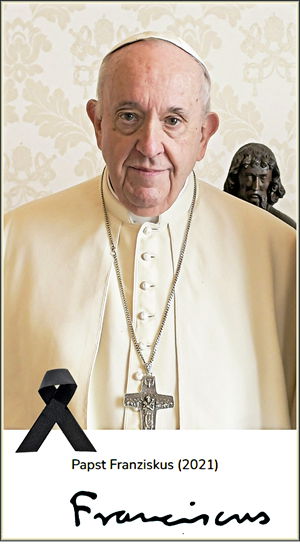 An’n Ostermaondag, den 21. April 2025, störw Paopst Franziskus, born at Jorge Mario Bergoglio, in dat hooge Öller van 88 Johre. An'n Vördag, den Oostersönndag, harr hei noch den Segen för dei Welt spennt; in dei Nacht is hei gaohn. Hei hett bookstäävlich "dat Tiedliche segent". Wat för ein Afgang för ein fraomen Christenminschen! Dei Dood van den Üppsten van dei katholschke Karken maokt dei heile Welt truurig. Dei eierste Paopst ut Südamerikao stünd för ein sporsaomet Läben, för soziaole Gerechtigkeit un för eine bätere Ümwelt. Nao seine Waohl at Paopst in dat Johr 2013 achde hei up dei Armen un dei minneachten Menschken. Dei Karken schull mehr barmhartig wän un Leiwde wiesen. Sien oprichtig un bescheiden Wäsen, sien Hartensfraomigkeit un persönliche Integrität was so äöwertügen, dat dei Minschken in aal dei Welt em vertrugen un em hoch achten dän. Blieben dait Paopst Franziskus sien Wark at Reformer un Brüggenbawer. In siene Amtstied güng et üm Aktionen gägen den Klimawannel, för den bäteren Ümgang mit dei annern Religionen un för moderne Karken-Strukturen. Un dorbi aaltied üm unbedingte Minschlichkeit. Dat wieset uck dat Wappen, dat Franziskus sik tauleggt hett: Blangen dat Jesus-Symbol un dei Symbolen Steern un Fruchtdolde för den Glowen steiht ünnen dei Waohlsprook, dei op Platt heit: