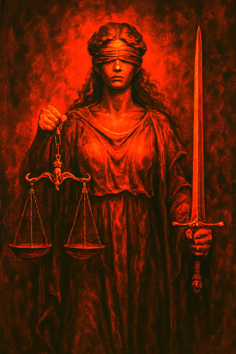 Bloots Unfreden. Un noch mehr Unrecht. Schenk du uns Eer un all de Minschen endlich dien göttlich Gerechtigkeit un dienen göttlichen Freden. Bild Justitia: KI