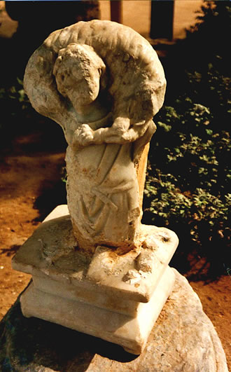 De steiht in Caesarea in Israel, un dortau höört de Text vun't verlorn Schaap. De Schäper steiht as Bild vun Gott. De Schaap staht för alle Minschen. Dat Schaap, dat sik verbiesterte, is en Bispill för all de Minschen, de vun ehr Weeg afkamen sünd. De hebbt Schuld up sik laden. De sünd biester gahn. Un faken weiten se nich, woans se trüüch finnen daut. Gah mi doch loos, dat is so en Glieknis von Jesus un so. Dat hannelt
