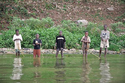 verschieden Boorsse, fischten un vun de se leven kunnen. Ja, ok bi uns in Stockelsdörp kunnst Victoria-Boors-Filett bi'n Fischmann köpen. De inheimschen hungrig Jungs an'n Victoria See in Afrika höpen. Een kunn jüm seggen: Håålt man juuch Tucken rut, de See is doot un woll ok all juuch inheimsche Boorsse. Un wat seggen de: Wi hebbt avers Hunger!
