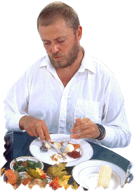 An een vun düsse Hungerdogen keem Bernd obends in sien Stammlokol, krall sik de Spieskoort un schree de Bestellung "Aant mit Rootkohl un Knödel un nich so lütt!" glieks in de Köök rin. "Nanu", segg Ramona, de Krögersche, "ik dink, ji beiden mookt Diät." "Snack nich lang rüm, mook to un beten fix!", hett Bernd gnurrt. Man kunn marken, he weer mit siene Nerven tofoot, stunn beus ünner Druck un harr dat hild. Bernd hett in'n Nu doolslungen, wat de Wirtin em serviert harr. Grod