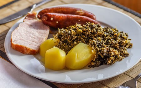 Tweemol in Johr gifft dat in uns Kroog 'n grotet Eten. In Winter is dat Greunkohl orrer Iesbeen mit Suerkruut un in Vörjohr Spargel un Schinken. He kümmt ninich ohne Plastiktüüt. Dor sünd twee Schötteln mit Deckel in. Sünd wi dörch mit de Schlemmeree un denn sitten wi noch bi Köm un Beer tosomen. He geiht denn allmol in de Köök un froogt, wat dor wull wat nobleben is. Dat weer jo nu allens betoolt. Is veel öberbleven, kannst du seker sien, he begööscht den Kröger or mookt 'n Handel. Veer Weeken loter lood he denn to'n Eten in. De Gäst süllt man för de Gedränke sorgen. He ward för dat Eten sorgen!