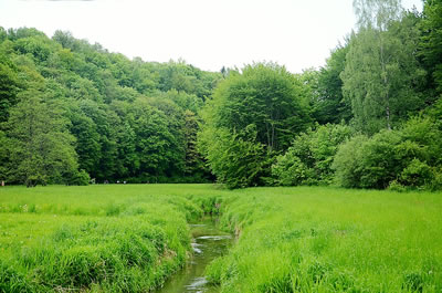 vun Heinz Tiekötter Nich wiet vun Bordesholm in Langwedel harr Klaus afsiet vun de Stroot, 'n wunnerboret Anwesen. De Wischen fallt hier 'n beten af un stiegt an de anner Siet vun en Bach wedder an un schafft 'n fein lütt Taal. Söben Kilometer vun den Bach geheurt Klaus to. An düt lütt Paradies hangt sien Hart. He hett 'n Forellenbecken utbaggert, en Bruuthuus boot un an'n Rand vun den grötteren Diek steiht nu fiefhunnert Meter vun de Stroot weg 'n lütte Hütt. In de köönt Klaus un siene Hilde merrn in de Natur öbernachten. An beide Sieden vun den Bach stoht op de Wischen siene witten Merino-Schopen.