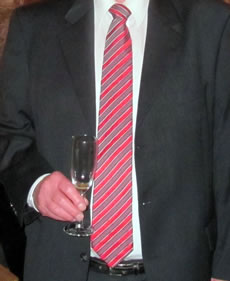 Dat is hüüt anners. Vun all de Mannslüüd üm uns rum harrn blots twee enen Slips ümbunnen, twee wat öller Herrn, de een harr enen roden üm, de anner enen blagen. Un disse anner, de weer ik. Un sünst? Jeansbüxen, Pullover, dat is normal.