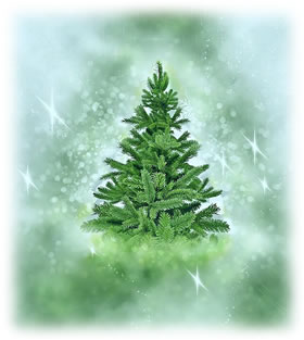 all 'n Dannenboom mit 'n Barg Lichten, dee ok noch in vulle Glanz
