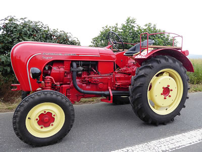 Siene Fro tipp sik mit ehrn Wiesfinger an de Stirn. Dat däe se jümmers, wenn ehr Mann siene Grappen in'n Kopp harr. Man denn keek se ehr Söhn an un seh, dat de rein ut de Tüüt weer. De Freid an Spijöök harr Frank vun sien Vadder arft. Jo kloor, worüm egentlich nich, dach de Modder. So'n Trecker is stabil, kann wat af un to gau fohrt so'n Dings ok nich. Un Autofohrers kummt 'n Trecker ungern in de Quere. Wenn de Schoolmeister partu keen Mopeds lieden kunn, denn müss he sik nu mit'n Trecker affinnen. As Frank mit sien Trecker bi de School ankeem un sik en freen Parkplatz seuk, geev dat 'n groot Halloo. De Huusmeister leep glieks to'n Rektor un meld em de Geschicht. De Rektor hett all ohnt, wokeen de Trecker togeheurt. In de Meddagsstünn geev dat wedder 'ne Lehrerkonferenz. Wat sullen se nu moken? Bi ehr leste Sitten harr'n se doch sülmst faststellt, dat Frank to gau ünnerwegens weer. Dat kunn jo nu mit'n Trecker nich mehr meuglich sien. Ok denn nich, wenn bi em vürn "Porsche" dwars öbern Keuler stunn. PS: Jo, so'n Trecker hett dat geben. Dat Ding harr 38 PS un is no'n Krieg würklich vun Porsche buut worrn.