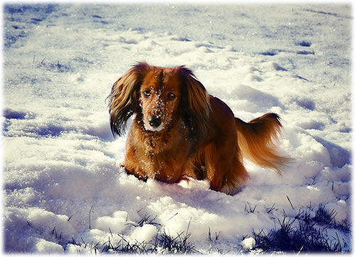 den Snee vör sik her, un denn keem de lütt Dackel in 't