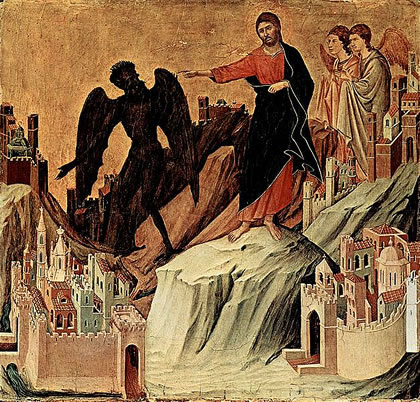 Wat is dat denn?, denkt wi. Warrd Jesus doch nie nich maken! Nä, He nich. Jesus weet, wen he to deenen hett. Man wi? Wenn wi dat so höört? Wat is mit uns, wenn een, de dat nich good mit uns meent, mit'n Dusend-Euro-Schien vör uns Oogen rümwedeln deit un seggt, kannst hebben, griep to? Wi wüllt mol gau fastholen Jesus sleit Macht un Besitz nich ut vun wegen dat Armutsideal. So as wenn Arm-Sien de reine Segen för een framen Minschen is. Dorüm geiht dat Jesus hier gornich. Jesus will siene Freiheit nich verleern, will nich in den Mammon sien Keeden kamen. Macht un Geld maakt Slaaven ut de, de meent, mit se ehrn Rikdom sünd se för alle Tiet heel boben op. Ik bün bang, leewe Gemeen, ook wi sünd den Düwel sien Hölpslüüd. Wi püstern mitünner in den Düwel sien Hoorn. Worüm? un wann? To'n Bispill: Wi seggt: "Wat wüllt eenli all de Flüchtlinge hier, ut Syrien oder Afrika? De schüllt gau trüüch in ehre Länner. Utlänners un Banditen hebbt wi noog hier in uns Heimat." Wi püstern in den Düwel sien Horn, wenn wi den Swatten Peter wechschuben un seggen: "Wat is denn dat för'n Gott, de de Minschen to Grunn gahn lett, de he doch dat Leben geben hett? Worüm lett Gott dat Böse, de Kriege, de Verbreeken to, un Unschüllige mööt dat utbaden?" Un bums föhlt wi uns as Unschuldslämmer!