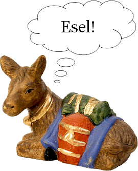 singt en Chor ut den Apparat dat Leed: "Nu ward Oss un Esel satt..."