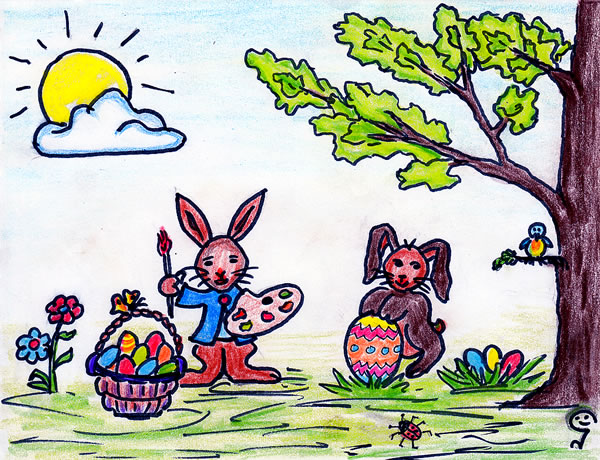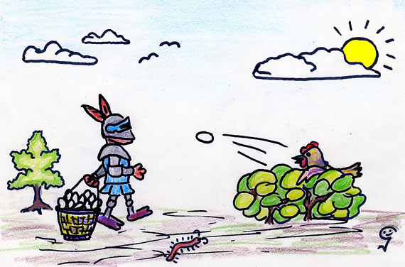Un denn keem dor, an de hööchste Eierfierdach, de dat up de Eer geev, so een schlappoohrigen Mümmelmann an un nääm hör dat Anerkennen wäch. Dorbi kunn he in siene Kleedoasch nich moal Feddern vöörwiesen oaber koakt Eieren lärgen, dat kunn he! Wiel de Hööner nu de Oosterhoasen up hör Turen van