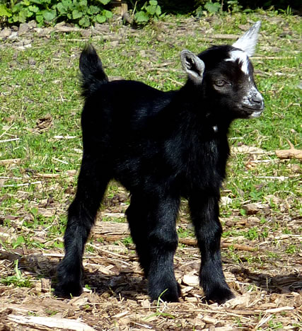 He harr en pickswartes, keen wittes Fell! Blots up sien Vörkopp harr he enen witten Placken, en Bless. Un de Ohren weern witt. As harr he den Kopp man kort in witte Farv duukt! Weer düt Wesen överhaupt en Zeeg...?