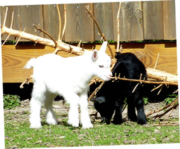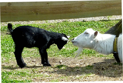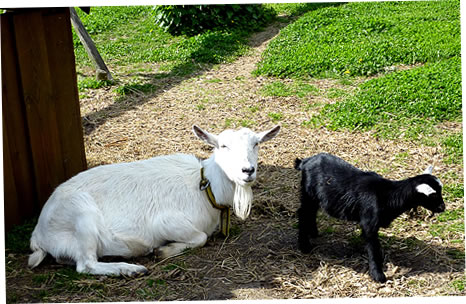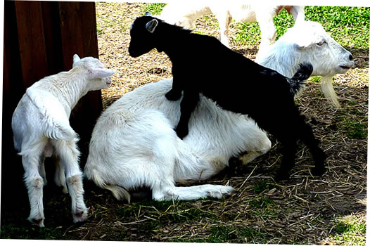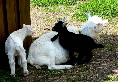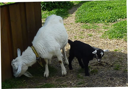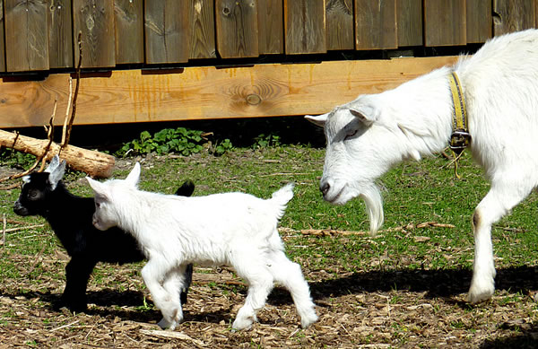 Nadem dat se sik in'n Schadden verpuust harrn, weern de lütten Zegen wedder ganz kregel, un de Sünn weer ok al en beten dal. So maschiern de twee Frünnen wedder över dat Feld. Keken sik allens nochmal niep un nau an. Flocki intresseer besünners dat Lock in'n Tuun, wo Mohrle ünnerdörch krapen weer. Se wull dat ok versöken, aver dat klapp nich. Se haar to veel Melk bi ehr Modder slappt!