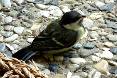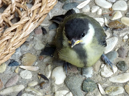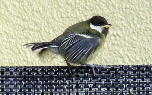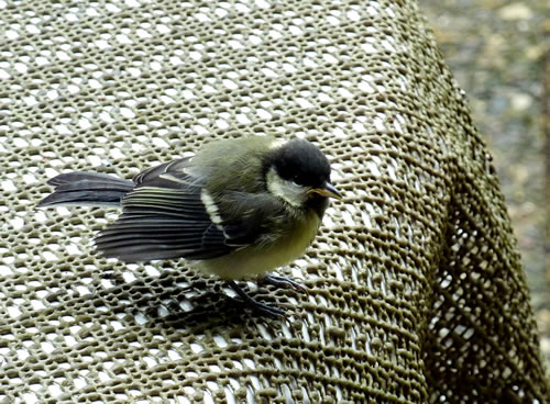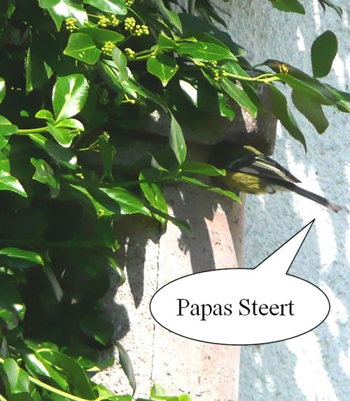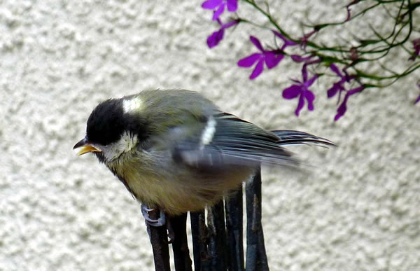 Vörsichtig flöög ik in Richt vun den Ammer. Lann aver eerst up den Disch un denn sett ik mi up den Ammerrand.