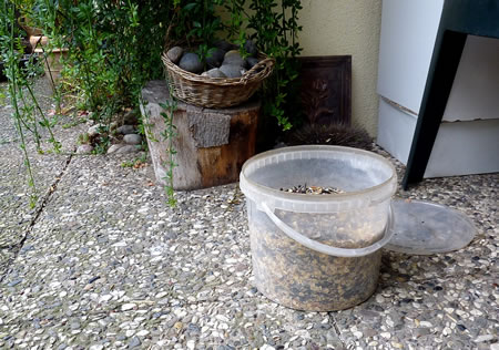 Wat kreeg ik dor to sehn! De Ammer weer wohrhaftig vull Vagelfoder!