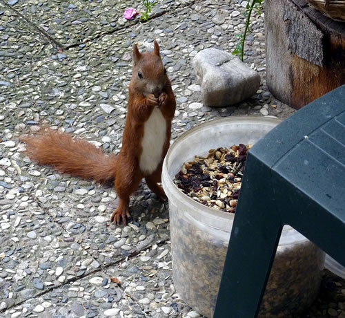 Neven den Ammer stünn uprecht en Eekkater. He harr sik wat vun uns Foder ut den Ammer haalt un freet dat up! Dat kunn doch nich angahn!!!