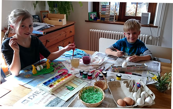 De Arbeit weer bald daan. In den Korv legen nu bunte Eier.