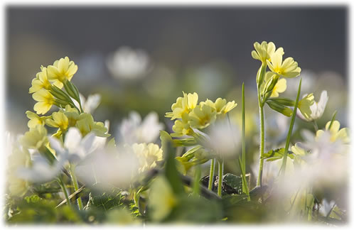 De Wisch stünn vull vun lüttje, goldgele, lüchtende Himmelsslötelblomen. As bi 'n richtigen Slötelbund hungen dor jümmers mehr lüttje Slötelblomen tosåmen, jüst so as in Modders Slötelkorv.