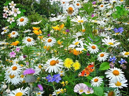 Op de Wisch blöht de Gräser un Blomen as Löventähn un Botterblomen, Mardelblomen un Vergeetminich. Un dat Geschäft in‘t Weertshuus to‘n Wiedenboom blöht ok. Den ganzen Dag kunn man de Huusdöörglock — dat weer een grote blaue Glockenbloom — lüden hören.