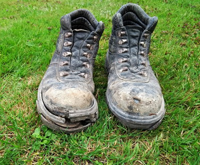 „Ooh“, möök de Portjee, denn he wüsst nich, wat he anners dorto seggen schull. De Stevels sehgen wohrhaftig schrecklich oolt ut. Se güngen ok all dull bückt un harrn vele Runzeln. Åvers dat seggt man doch de Lüüd nich geern.