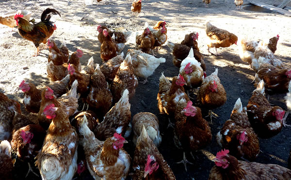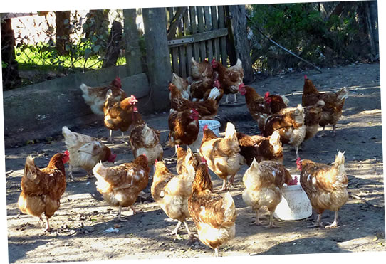 Verlopen kunn he sik nich. Dat Gakeln vun de Höhner wies em den Weg. Üm den Hoff weer en höltern Stakett mit en Poort. Dor achter weern de Höhner. So veel Höhner harr de Oosterhaas noch ni up'n Hupen sehn. Wenn se em helpen wulln, denn kreeg he seker sien Korf noch vull.