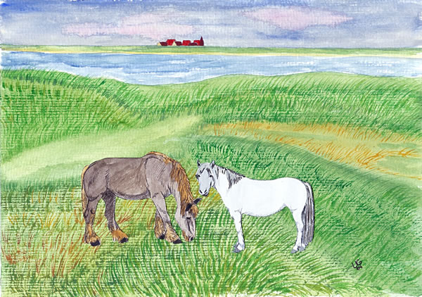 ehr lütt Hus is al to sehn. Talke un Seehund sünd froh,