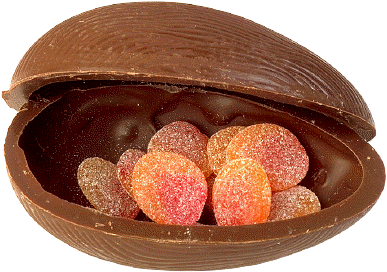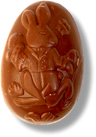 Hasenmudding hett Zuckersnuut werrer fien ruteputzt un all' de Kinner up 't Lann' un in de Stadt kregen, so as ümmer, gäle, gräune, rode, blaage un kakelbunte Ostereier ok Coco-de-Fleiger, ein Papagei, de eins utknäpen wier un hoch fleigen künn, Soebenpunkt, all lütt bäten kläuker, Kuno-Wau, de klauke Hund, un de bannig klauke Mule-Mule-Muschikatt un ick ok.