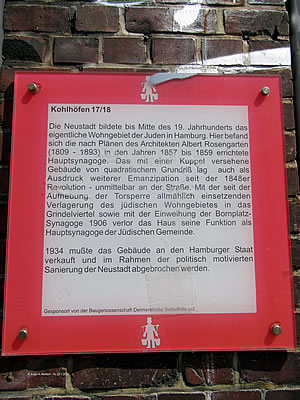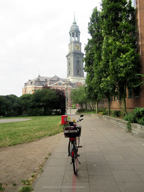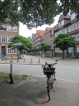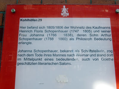As ik den roden Streek Peterstraße to Enn gung, kunn ik mi entscheden: na links or na rechts? Ik gung na rechts un an'n Großneumarkt vörbi denn Richt Michel, also de Kark St. Michaelis. Op'n Weg dorhin is de Geschwister-Mendelssohn-Stieg, mit 'n Gedenksteen för Fanny un ehrn Broder Felix. Op Fannys Steen is 'n Stück vun ehr Schwanenlied för Gesang un Piano. In Wer steckt dahinter? Nach Frauen benannte Straßen, Plätze und Brücken in Hamburg" (Landeszentrale für politische Bildung, Hamburg 2009) schrifft Dr. Rita Bake: Fanny und Felix Mendelssohn stammten aus einem Bankiershaushalt (Vater: Abraham Mendelssohn, Bankier). Die Mutter, Lea geb. Salomon, war eine hervorragende Pianistin. Sie gab ihrer Tochter schon früh Klavierunterricht. Fanny begann bereits als Kind zu komponieren und erhielt mit ihrem vier Jahre jüngeren Bruder Kompositionsunterricht bei Carl Friedrich Zelter. Dat heet, se weer en professionell utgebildete Musikerin, Komponistin, Pianistin un Dirigentin müss awer to Huus blieven. In de Große Michaelisstraße weer dat Geburtshuus von de Geschwister Mendelssohn. Dat neegste Mol bün ik denn wedder mit mien Fohrrad to dat Komponisten-Quartier fohrt, an'n Enn vun de Peterstraße awer dütt Mol na links, in de Straat Kohlhöfen. Un wat seh ik dor? Dor hett uk de Koopmann Heinrich Floris Schopenhauer leevt. He is 1747 in Danzig op de Welt kamen un 1805 storven. He harr wull Depressionen un is ut'n Fenster fallen Sien junge Weetfru Johanna Schopenhauer (born 1766 in Danzig, storven 1838 in Jena) is denn mit ehr Dochter Adele na Weimar trocken un hett dor as Schriftstellerin un Salonnière leevt. Se hett ünnerscheedliche Böker schreven. In de Staats- un Universitätsbibliothek Carl von Ossietzky (den sien Geburtshuus steiht in de Michaelisstraat 10!) sünd mehrere uttolehnen, vun ehr un över se. Vun Ulrike Bergmann to'n Bispeel Johanna Schopenhauer