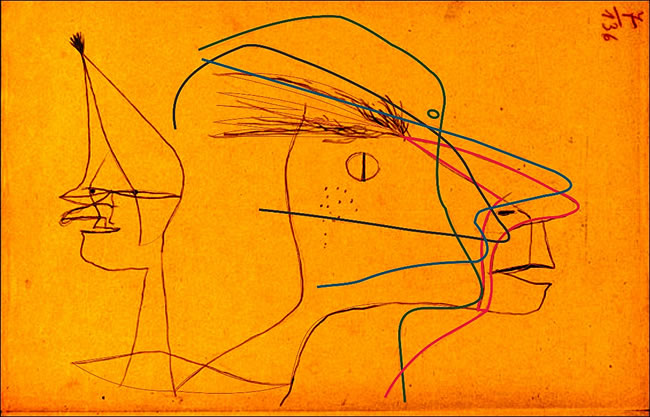 Paul Klee geef Unnericht an dat Bawhuus. Dortau har hei för sick eine Sammlung ut Texte un Teiknungen fardig maokt. Hei bruukde blots korte Gedanken un Ideen un einfache Formen. Dat was sien Rüstwark. Unner dei Äöwerschrift "Formenwark un Formaot" finnt man disse Teiknung.