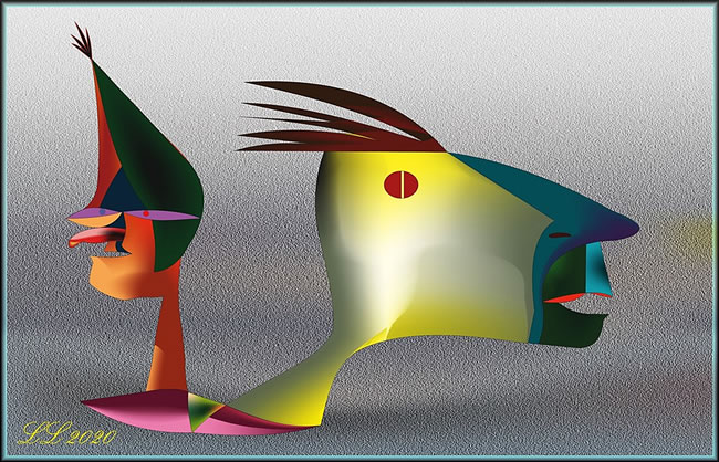Dortau passt uck Klee sien Satz (1920): "Dat Bewägen maokt aals." Dit Bild staiht för den Satz: Unglieke Formen maokt tausaome ein Formenwark. Nargendswo fünd ick disse Bild-Idee so in Klee siene Biller. Dit Bild mög ick doch tau gerne farwig seihn. Corel Draw is mien Warktüg dortau. Neern daut nu dei Farwen ehr Wark. In dat Formenwark luurt nao mienen Sinn uck dei Wind.