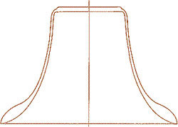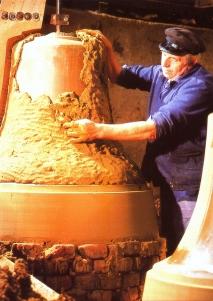 vun de Klock. De "Rippe" warrt op en Holtbrett tekent un langs de binnere Kontuur utsneden, un de so wunnen Schablone warrt över en depe Gruuv ophangt, dat se sik symmetrisch dreihn lett; un langs de Dreihlinie warrt nu de Klockenkeern ut Tegel opmuert. De Klock warrt nämli in de Gruuv gaten warrn.