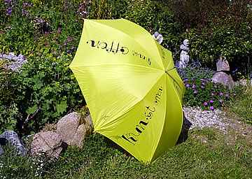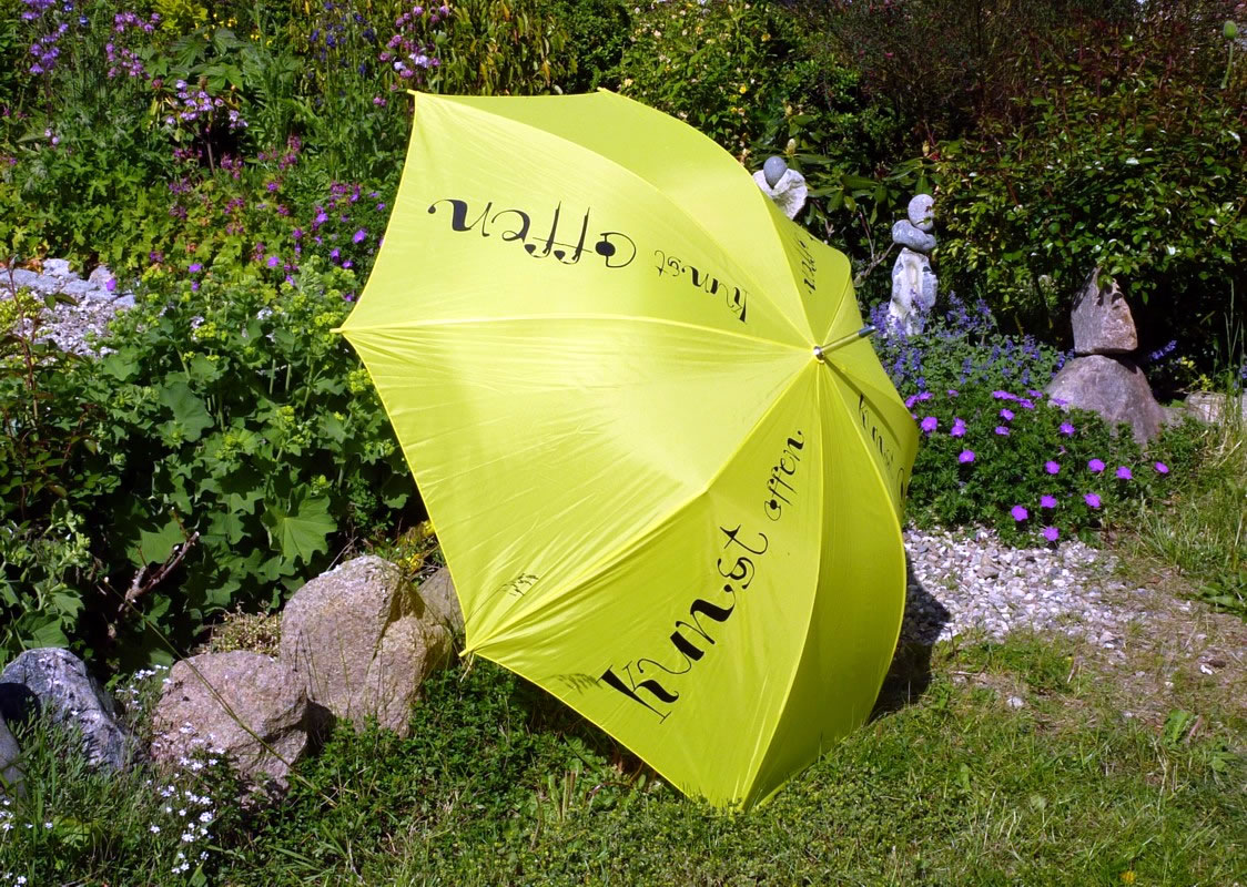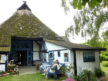 In Meckelnborg-Vörpommern weer wedder dat Pingst-Kunst-Wochenenn to "Kunst offen!". Grote gele Regenschirms wiest di den Weg to verscheden Kunstwarken. Biller, Plastiken, Keramiken un anner Saken kannst ankieken un mit de Künstler bi Kaffee un Koken över ehr Kunst snacken. Dat is en heel intressant Saak. Dat Pingstweder weer nich dat allerbest. De Sünn harr sik achter griese Wulken verkrapen un dat weer böös diesig. Aver dat weer nich kolt un wi hebbt uns up den Weg maakt.
