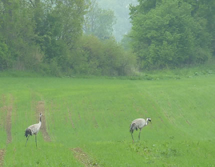 Mank gele Rapsfeller un blöhende Appelbööm güng uns Fohrt dörch de schöne Landschop vun den Klützer Winkel. En Künstler harrn wi al upsöcht. Sien Biller hebbt uns nich so toseggt. Nu güng dat to den neegsten Künstler.