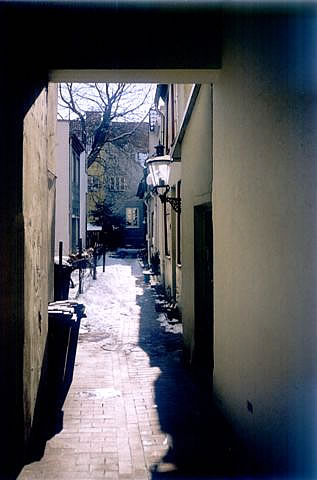 dor is de Straat steil un small, na ünnen to warrt se breet un