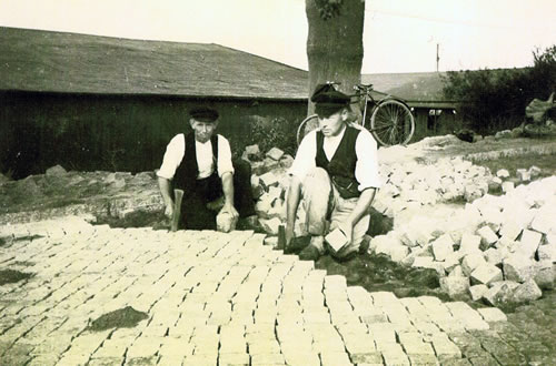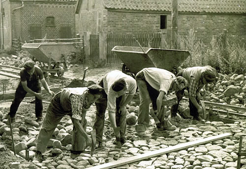 Auto passte nich dörch. En böös Stück Arbeit! Ganz an 'n Anfang hett man mit de Brüggel plaastert, Kattenköpp