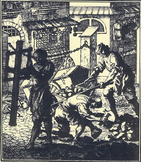 Nu weer dat in dat olle Lübeck so, dat de Straten nich överall un gliekmäßig enen fasten Grund harrn. Jeedeen Huusbesitter harr de Plicht, de Straat vör sien Huus in Ordnung to hollen, dat heet, so breet as sien Huus weer, avers man de een Hälft vun de Straat, för de anner Hälft weer de Naver gegenöver tostännig. Nu kost Stratenbuu veel Geld, so en Huusbesitter hett dor dat Geld nich geern för utgeven. Dorüm süllt de Straten in uns Stadt in enen jämmerlichen Tostand west sien. Wenn nu aver mal en Peerd orrer en Koh up so en Straat to Schaden kamen weer, denn müß de Huusherr betahlen. Müß nu würklich mal wat daan warrn an Weg un Straat, denn weern dat oft Arbeitslüüd, de nix kunnen, "Fuscher". Dorto keem de Verkehr mit swore Peerwagen, Brennholt wörr afkippt up de Straat un dor ok twei haut. Keen Wunner, dat de Straten leeg utsehn hebbt. Allns dat hett man de Steenbrügger vörhollen. 1786 hett de Buuhoff hüüt seggt wi Buuamt mit Straaf droht; se wullen sogoor dat Amt uplösen. De Steenbrügger sullen de Straat graad un överall gliek maken, vör dat en Huus nich höger as för dat anner. De Rönnen vör de Hüüs un dat Siel över de Straat sullen so sien, dat Water goot aflopen kunn, de Afwies-Steen sowat as Poller sullen nich wieder vun de Hüüs af as vörher. Den Siedenweg de Footstieg hebbt de Huusbesitter mehr un mehr för sik bruukt. Dor stünnen Bislääg, so as hüüt noch hier vör de Schiffergesellschaft, de Togänge to de Keller weern dor un de Lüüd hebbt Linden plant. 1788 hett de Buuhoff enen Steenbrügger ut Kiel instellt, de sull an 't Borgdoor plaastern. De Lübecker Steenbrügger hebbt sik över sowat dull beklaagt. Ganz böös weer dat in de Franzosentiet un dorna. Keen Stadt harr so wörr vertellt so böse Straten. De Steenbrügger müssen för den Buuhoff arbeiten. Dor kunnen se männichmal nich ehr dääglich Broot bi verdenen, denn müß de "Huusfru" de Ehefru as Topleger helpen. 1827 hett de Buuhoff de Königstraat plaastern laten mit sien egen Lüüd. Wedder hebbt sik de Steenbrügger beklaagt. Wat kregen se as Antwort? "Ein hoher Rath hat das Gesuch der Bittsteller einstweilen ohne Dekret hinzulegen verordnet." In de Rull steiht: "Rönnstein von Brettern und Steinen legen." Dat weern Rönnen för de Entwässerung, de lepen dwars dörch de Hüüs. Hans Calm schrifft üm 1870 in sien Book "In Lübeck stand mein Vaterhaus":