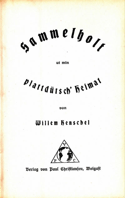 van Willi Höfig Dat Glück is mehrstendeels en Pott vull Nieten, hett Günther Petersen schreven. Nu heff ik wat funnen, freit sik de Fründ van de olen Böker un grippt in de Kist op'n Flohmarkt: Sammelholt ut min plattdütsch' Heimat steiht op de Böversiet, un de Schrieversmann is een Willem Henschel. Rutgeven harr dat lütte Book de Verlag Paul Christiansen in Wolgast in't Johr 1923. Dat weern lege Tieden Hitler versöcht in München de Regeren to störten un keem in Landsberg achter sweedsche Gardinen, un 1 Dollar keem op 4,2 Billionen Mark (12 Nullen!). Woveel Millionen Willem Henschel sien Sammelholt dunn kost hett, dat heff ik nich rutfunnen.
