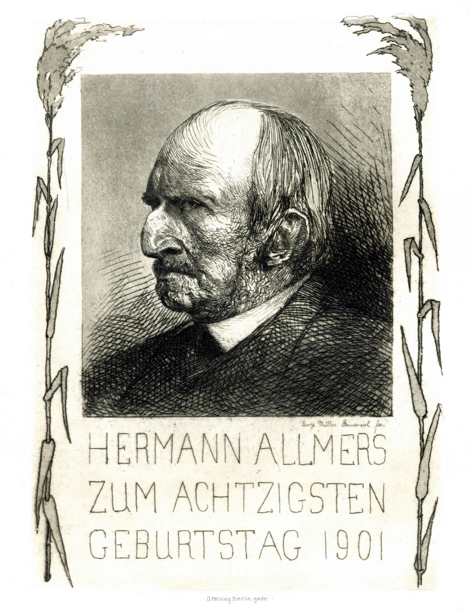 van Willi Höfig In siene Tiet worr Hermann Allmers (1821 - 1902), born un storven in Rechtenfleth an de Werser bi Bremen, Friesenhäuptling un Marschendichter nömt. Freesenbaas, üm dat siene Familie freesch weer un jümmer de Eerste in Rechtenfleth; Marschendichter wegen sien Marschenbuch van 1858. Man nich blots de Lüüd in Noorddüütschland kennt em. Allmers was en beropen Naam in half Europa un wiß in't heele Düütschland. Grootbuer ut de Wersermasch, Dichter un Schrieversmann, Politiker, Maat van Künsters un Wetenskuppers, Fründ van Haeckel, Riehl, Geibel, Heyse, Vischer. Un jümmer op'n Padd: In Italien (Römische Schlendertage, 1869) un in de düütschen Städter un Länner. De Breev van siene Reisen worrn al 1856 druckt. Siene Gesammelte Werke warrt noch to sien Leevtieden rutgeven, 1892 - 1896.
