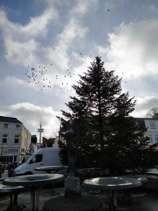 dat niege johr lett noch nüms rin, noch steiht tomerrn de wiehnachtsdann noch bitt de dood sien grientje driest un düüster blifft dat weder, man hier töövt wi geern mit fasten sinn: |