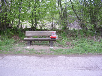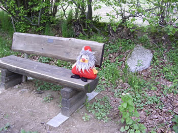 de spurbahnweg geiht wischenmang, un vun de bank, da kiekt mi an woor he hier utsett? vun wokeen? he sitt alleen mit hangen arms, och lütte mann! dat land so gröön, |