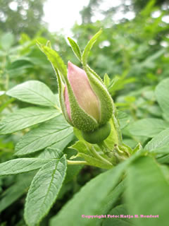 Rosen vun Katja H. Renfert In Petermanns Almanach för den Biogoorden (Verlag Ludwig, München 2009) steiht, dat de Braakmaand de Tiet vun'e Rosen is. De Bloom, de mennigeen uk "Königin vun'e Blööm" nömt, is en stickelige Schöönheit. Se hett aver keene Döörn, as veele Lüüd oftins seggt, sünnern Stickels. Stickels sünd man blots ut de baveren Zellschichten rutwussen, sünd quasi de Huut. De düütsche Schriever Friedrich vun Bodenstedt (1819 1892) wußt villicht nich den Ünnerscheed twischen Döörn un Stickels. In en Gedicht seggt he: De sööte Ruuch vun de Roos