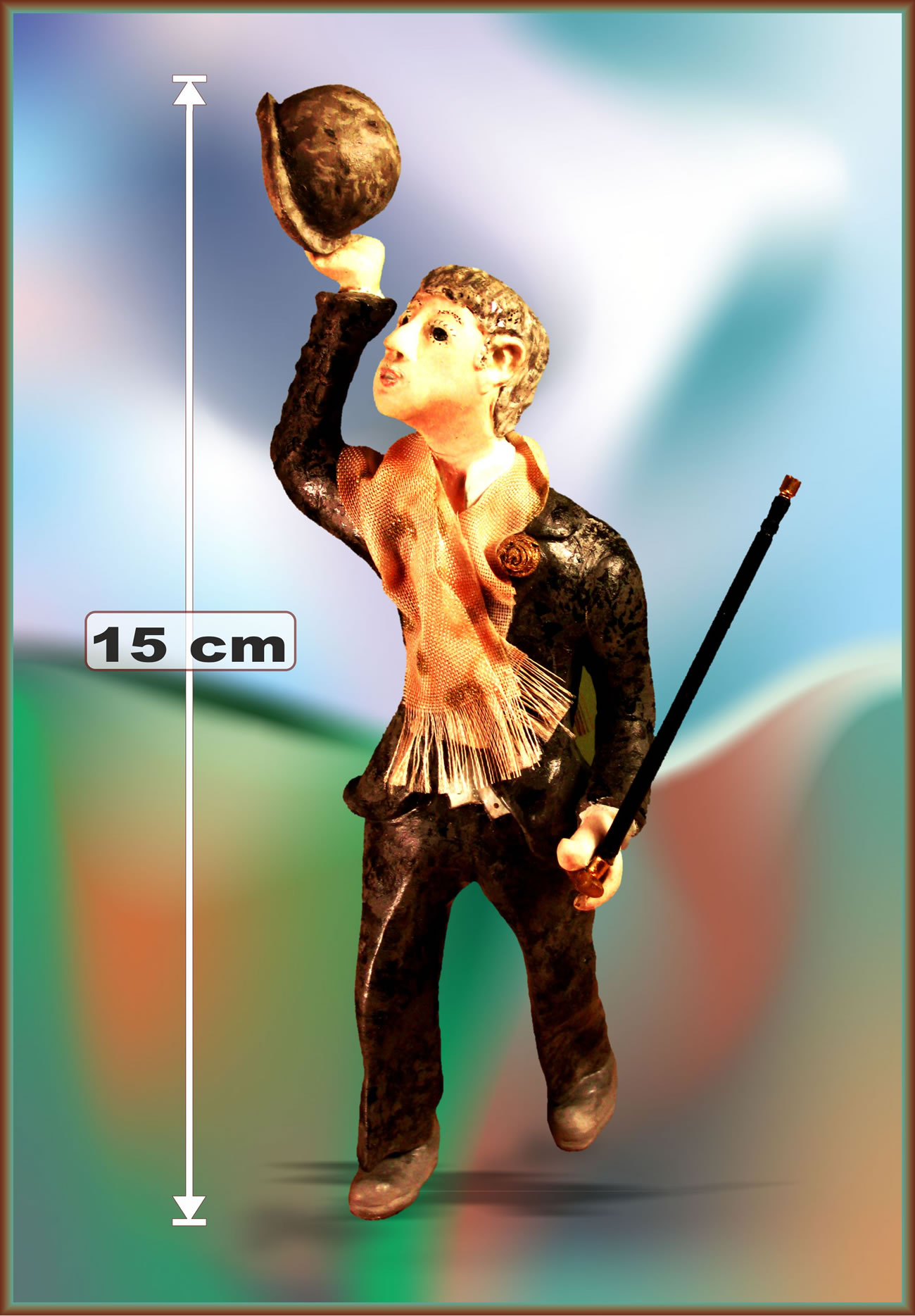 Dei Figuren passet in einen Ruum van rund 15 cm maol 15 cm. Achter eine