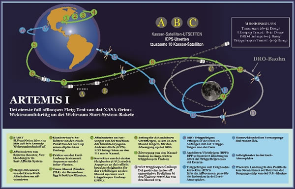 van Ludgerd Lüske Dei NASA hätt eine gewaltige Mission up dei Startrampe staohn. Ehr Naom is Artemis, dei antike Göttin van dei Jagd un den Maond. Un up dei Jagd nao den Maond is dei ganze Mission.