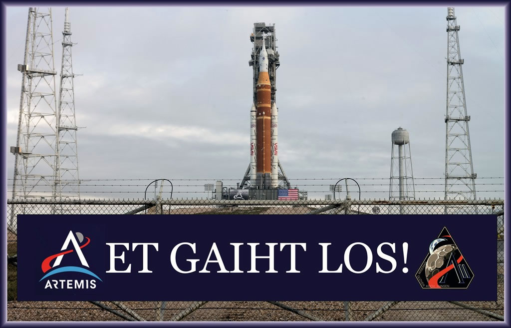Ein Banner mit dei Unnerschriften van NASA-Lüe un Firmen-Lüe is an den Tuun van den Start-Komplex 39B faste bunnen. Vörher har man dei NASA-Artemis II-SLS-Rakete mit dat upbawde Orion-Ruumschipp an'n 17. Januar 2026 nao dei Start-Rampe bröcht. Nu kann et losgaohn!